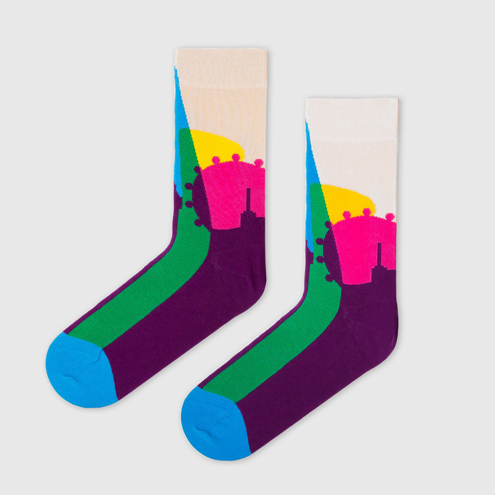 This is a pair of socks with a message. Alter and us hope to inspire you to explore your city and soak up its culture on foot. The design is defined by colours and shapes of our city, which is our third tribute to London after successful designs "6k Edition" and "The Magic of London".
