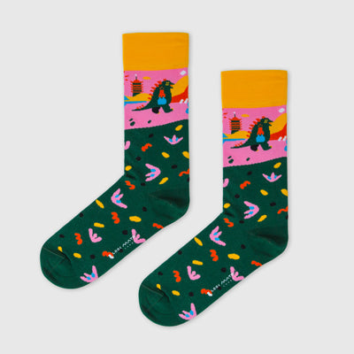 Some say he is a salesman in Tokyo, some say he is carrying secret documents in his briefcase. We are in love with this pair and it will not be long for Godzilla socks to become your favourite pair of Look Mate.