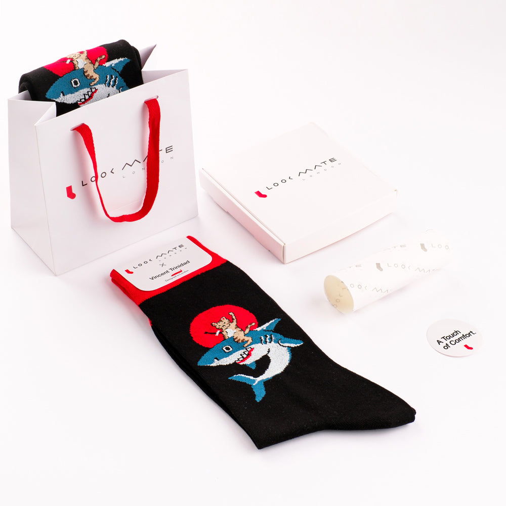 A bold tribute to Japanese pop culture, this 3-pair sock pack brings together a quirky trio of characters: the legendary Godzilla, the mysterious Japanese Salesman, and the fearless Cat The Shark Rider. Each pair is a conversation starter—packed with colour, fun, and storytelling. Designed for dreamers, collectors, and anyone who loves Japan with a twist.