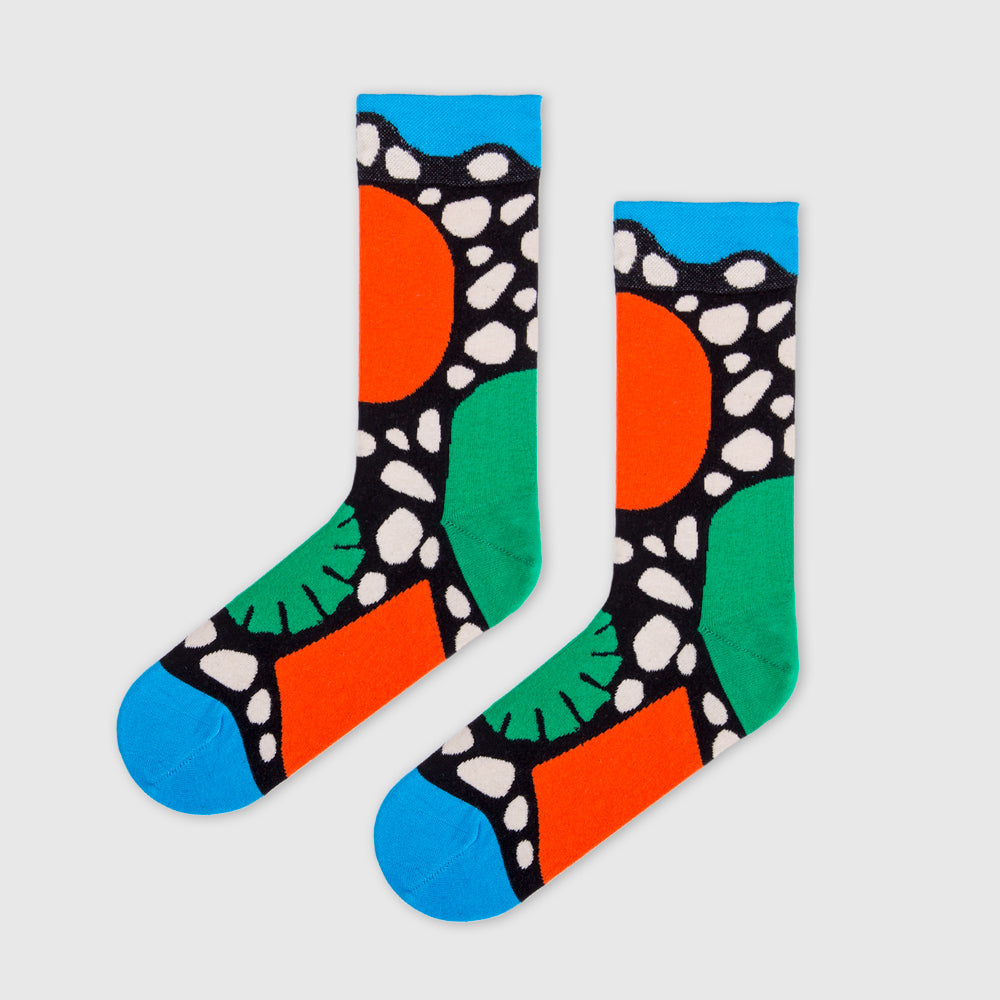 This sock is a graphic expression of nature in its pure form. It’s inspired by the simple things in nature, and the way their singularities can be evoked with the most basic shapes.